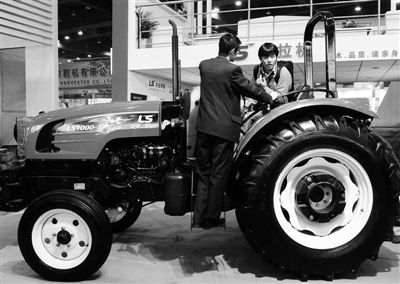10月27日,在农机会现场,参观者坐在拖拉机上听参展方介绍产品。 当日,2011年中国国际农业机械展览会在郑州国际会展中心开幕。在为期3天的展会上,来自全国各大农业机械厂商纷纷带来最新的农机产品。 李 博摄 (新华社发)