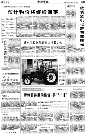 前9月工业利润同比增长27%