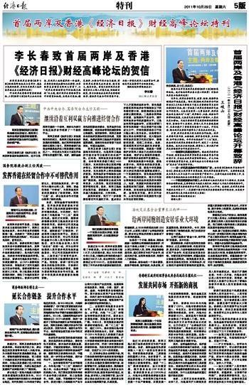 当前,国际金融市场持续动荡,世界经济复苏前景尚不明朗,两岸三地共同面临着外部经济环境的挑战。与此同时,我们迎来了内地实施“十二五”规划的机遇。新的历史时期,需要香港继续在两岸三地经贸关系中发挥积极作用。香港可以利用其金融发达、法律完备、专业服务水平高、国际联系广泛等优势,打造两岸三地的投资平台,促进三地企业相互投资;可以利用其国际金融中心和人民币离岸中心的地位,成为内地企业和人民币“走出去”的第一站,并为台湾市场提供人民币服务和其他经贸金融服务;可以利用其熟悉两岸市场,人脉关系广泛等有利条件,开发适应两岸三地需要的服务和产品。我相信,香港一定可以凭借自身的地位和优势,不断深化与内地和台湾的经济联系,继续为促进两岸经贸合作与交流、建设中华民族共同家园做出独特贡献。