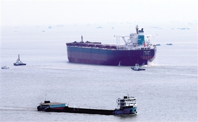 10月28日,“淡水河谷·中国”38万吨矿砂船在长江主航道试航。 当日,我国建造的38万吨矿砂船“淡水河谷·中国”在江苏南通顺利启动试航。该船长360米,船宽65米,型深30.4米,是江苏熔盛重工建造的该类型船舶中的第一艘,也是目前中国造船企业建造的最大吨位散货船。 丁晓春摄(新华社发)