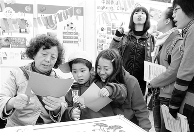10月29日,北京大学百年讲堂广场,人们正向老师学习剪纸技艺。当天,以“创意先锋:我们的未来”为主题的北京大学第八届国际文化节开幕,并陆续举行包括主题游园、文艺演出、创新大赛等10余项活动。 本报记者 赵 晶摄