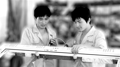 10月24日,北京顺义美驰建筑材料有限责任公司五金组工人李小东(右)和李志勋正在加工门窗。该企业是国内首家引进德国技术和设备,以高档门窗的生产、销售、服务为主营业务的知名门窗企业,其产品除在国内畅销外,还出口到美国、日本、南非等十几个国家和地区。 本报记者 张 欣摄
