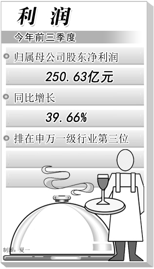 结合五粮液的三季报来看,该公司1月至9月实现营业收入156.49亿元,同比增长36.14%;实现净利润48.18亿元,同比增长41.91%,五粮液依然保持了收入和净利润的高速增长。但与半年报增速相比,第三季度该股增长势头却有所放缓。“伴随销售旺季到来,高端白酒供给压力在短期内仍然难以缓解,其销售紧俏态势将持续,进而支撑其高位价差。”中信证券食品饮料行业首席分析师黄巍说。