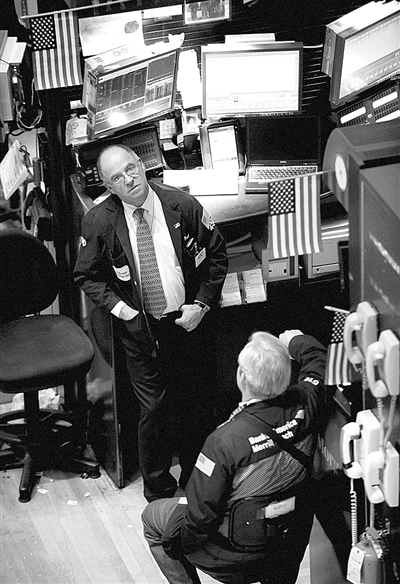 由于希腊突然决定就是否接受欧盟新一轮救助方案进行全民公投以及美国经济数据欠佳影响,11月1日纽约股市三大股指重挫逾2%,其中道指跌幅接近300点。图为交易员在纽约证券交易所内工作。 新华社发