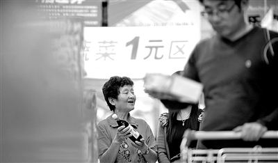 图③ 退休后的叶荷生根本闲不住,她在逛超市时还向消费者了解他们对醋品的意见和建议。