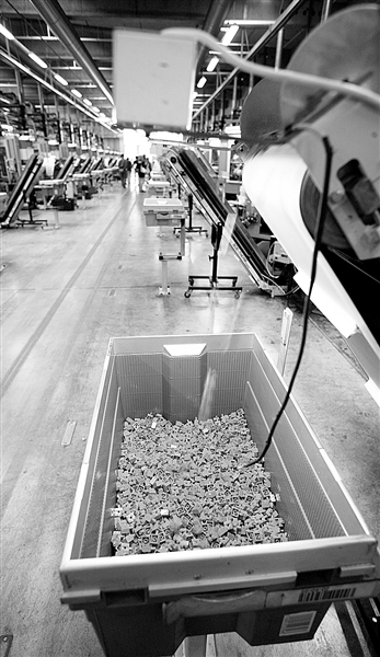 图为乐高公司积木生产线和生产好的积木组件。 郭 辑供图