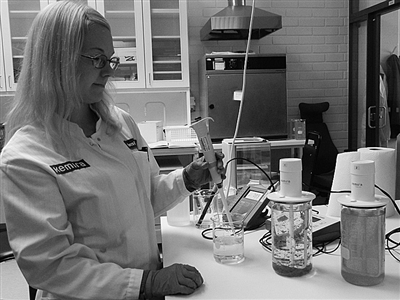 ①在芬兰最大的水化学品公司Kemira公司,研究人员在测试水质。