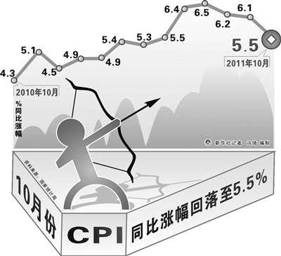 去年下半年以来,CPI出现了一路高涨的态势。今年初达到4.9%后继续走高,5月份达到5.5%,7月份创下了今年以来6.5%的最高峰值。此后,随着价格调控效果的逐步显现,8月份CPI涨幅回落到6.2%,9月份继续回落到6.1%,10月份已经快速回落到5.5%。