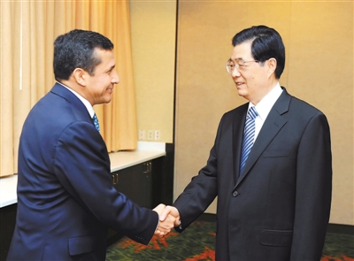 本报美国檀香山11月11日电 记者翁东辉 李正信 唐昊报道:国家主席胡锦涛11日在美国夏威夷州首府檀香山会见秘鲁总统乌马拉。两国元首就双边关系及共同关心的问题坦诚深入交换了意见,一致同意共同努力推动中秘战略伙伴关系进一步向前发展。