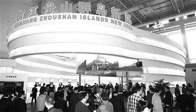 11月11日,首届中国海洽会在浙江宁波举行,众多观众在浙江舟山群岛新区展台参观。 新华社记者 张和平摄