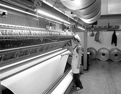 福州德胜织染有限公司纺织女工在车间工作。该公司有职工520人,以经编针织、印染为主,拥有8条定型生产线、40台花边机。据了解,福建长乐市经编花边生产产能占全国三分之一左右。德胜织染董事长林民强坦言,由于经编纺织附加值相对较高,今年虽遇困难,但公司毛利率有望达到30%。 本报记者 谭 辛摄