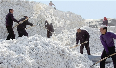甘肃玉门市10万亩棉花喜获丰收。11月3日,玉门市小金湾乡东乡族农民在晒选新棉。 本报记者 李琛奇 通讯员 万宗平摄影报道