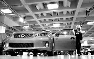为期9天的第54届旧金山国际汽车展日前开幕,图为工作人员在汽车展上向观众做讲解。 新华社发
