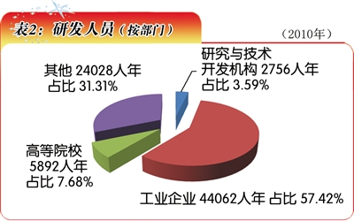 “十一五”时期,福建省全社会研发全时人员总数大幅增长,从2006年的40233人年增长到2010年的76738人年(表2)。