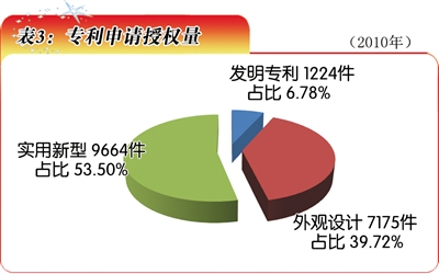“十一五”时期,福建省专利授权量达51455件,是“十五”时期的2.3倍。2010年专利授权量达18063件(表3),并获得国家级科技奖励29项。