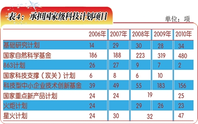 2010年,在13个国家科技重大专项中,福建省参与承担了其中2个重大专项项目研发(表4)。