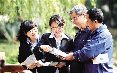 浙江温州南瓯明园社区,国家电网瓯海供电分局第二营业所林少娃(左二)等工作人员在向社区居民普及安全用电、节约用电知识。这样的走访在冬季用电高峰来临时经常进行。