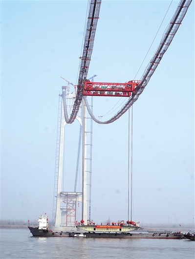 南京长江四桥开始钢箱梁吊装施工