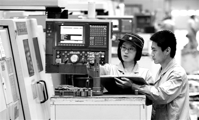 12月3日,北京顺义临空经济区北一数控机床有限责任公司车间员工正在加紧生产。顺义区域经济形成以电子通讯、汽车制造、食品饮料、现代物流、航空运输、会展经济为支撑的产业格局,目前已吸引了8家世界500强企业及70余家国内外知名物流企业落户。 本报记者 李景录摄