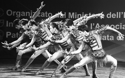 12月1日晚,在意大利罗马猎户座剧院,来自海南的中学生表演群舞。 当天,作为“中国文化年”系列活动项目之一,由中国教育部组织的2011年中意青少年艺术联欢节在罗马举行。联欢节旨在加深两国青少年之间的相互了解和友谊,增进交流。 新华社记者 王庆钦摄