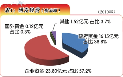 “十一五”时期,甘肃省全社会研发经费逐年增长。2006年该项支出为23.86亿元,2010年增至41.59亿元,占地区生产总值的比重为1.01%(表1)。