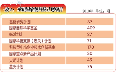 2010年,甘肃省执行国家和省级基础研究类项目662项,承担国家级科技计划项目841项(表4),在13个国家科技重大专项中,参与承担了10个重大专项项目研发。