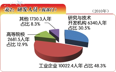 甘肃省全社会研发全时人员总数大幅增长,从2006年的16441人年增长到2010年的20774.2人年(表2)。