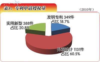 “十一五”时期,甘肃省专利授权量达6045件,是“十五”时期的2.2倍。2010年专利授权量达1868件(表3),并获得国家科技奖励6项。