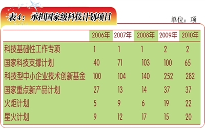 2010年,陕西执行国家和市级基础研究类项目1559项,在13个国家科技重大专项中,陕西参与承担了其中10个重大专项项目研发(表4)。
