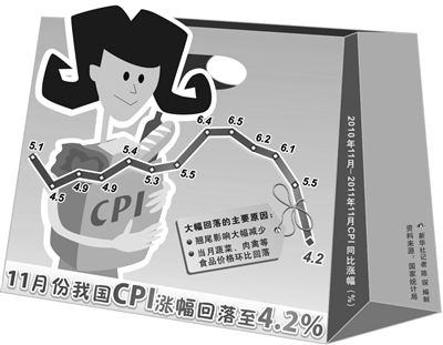 7月份以后,前期采取的物价调控的各项政策措施效果开始逐步显现。8月份,CPI涨幅回落到6.2%,9月份继续回落到6.1%,10月份回落到5.5%,11月份大幅回落到4.2%。PPI涨幅8月份回落到7.3%,9月份继续回落到6.5%,10月份大幅回落到5.0%,11月份继续大幅回落到2.7%。