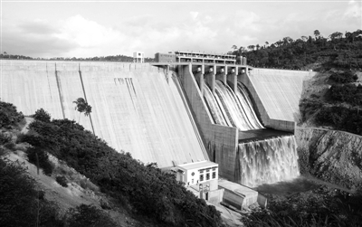 柬埔寨贡布省甘寨水电站日前建成发电,图为甘寨水电站大坝远景。 新华社发