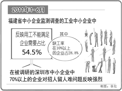 近年来我国沿海地区中小企业“用工荒”、“招工难”并不是一个陌生的现象。在当前劳动力成本上升、产业转移速度加快的大背景下,中小企业“用工荒”程度如何?原因何在?对企业生产经营造成了何种影响?中小企业又该如何面对和解决这个难题?带着这些问题,本报记者赴广东、福建等地进行了全面调研,并采访了相关专家和企业界人士。