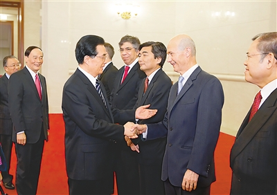 论坛开始前,胡锦涛会见了出席论坛的有关国际组织负责人和中外企业家代表并同他们合影留念。