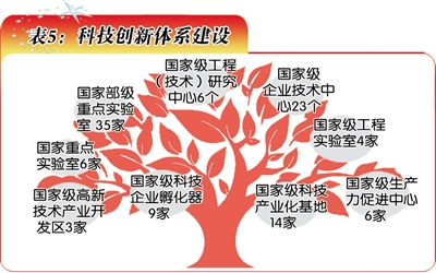 加快建设以企业为主体、市场为导向、产学研相结合的科技创新体系,高新技术园区和产业基地建设取得重大突破,芜湖高新区、蚌埠高新区获国务院批准升级为国家级高新区。截至目前,全省拥有国家级高新区、国家火炬计划特色产业基地、国家高新技术产业化基地及各类国家创新创业平台106个(表5)。