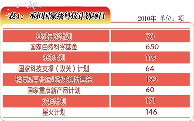 2010年,安徽省执行国家各类科技计划项目1473项(表4),在13个国家科技重大专项中,参与承担了10个重大专项项目研发。