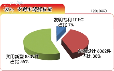 “十一五”时期,安徽省专利授权量达3.46万件,是“十五”时期的2.7倍。2010年专利授权量达16012件(表3),并获得国家科技奖励18项。