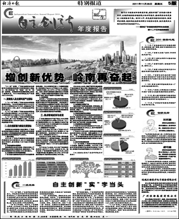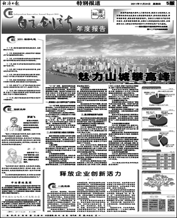 从11月21日至今,本报以专版的形式连续刊出全国各省区市《自主创新年度报告》,这是本报首次以自主创新为主题推出的年度报告。报告用数字说话,内容翔实,涵盖面广,受到读者的广泛好评。