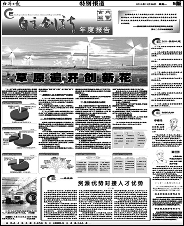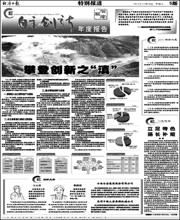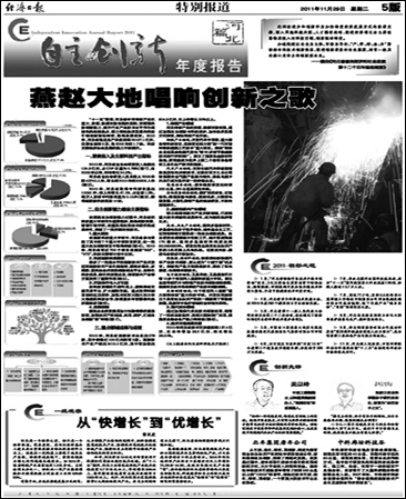 经济日报从11月21日开始推出的系列报道《自主创新年度报告》,用客观、权威、翔实的数据图表和案例,展示了有关省区市在“十一五”时期和“十二五”开局之年的创新举措及规划等,搭建了各地自主交流的良好平台,充分体现出一家中央财经大报的大格局意识和风范。