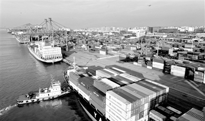 这是12月12日拍摄的繁忙的厦门海天集装箱码头。1至10月,厦门港货物吞吐量完成1.3亿吨,同比增长14.8%,增幅居全国八大港口首位。 新华社记者 张国俊摄