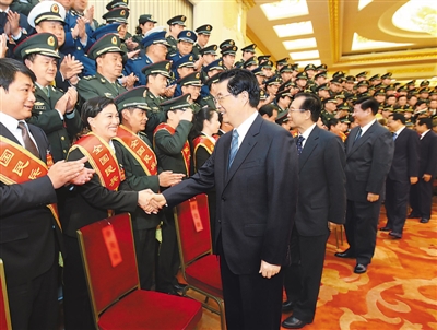 胡锦涛亲切会见与会代表,向奋战在国防动员和后备力量战线