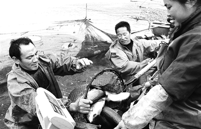 12月15日,在江西省赣州市赣县居龙滩水产专业合作社的养殖人员正在捕捞鲜鱼。当地库区群众采用“大型超市+专业合作社+养殖户”模式大力发展订单水产业,每年增收1亿元。 本报记者 赖永峰 通讯员 朱建华 摄影报道