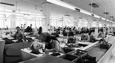 贵州一家民营企业服装生产车间一角。徐 雁摄