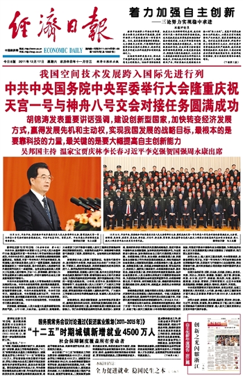 中共中央国务院中央军委举行大会隆重庆祝 天宫一号与神舟八号交会对接任务圆满成功