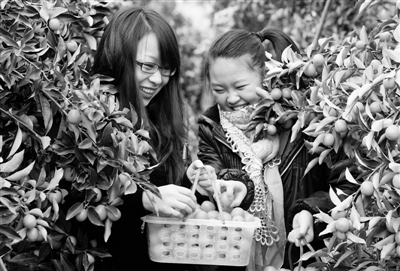 12月17日,游客在广西柳州市融安县大将镇大将社区三马屯采摘金橘。广西融安县具有种植金橘的悠久历史,近年来融安县强化“金橘生产基地”建设,实施金橘“三避”技术并大力推广无公害技术和农业标准化生产,全县金橘产量连年提高。目前,全县金橘种植面积已达7.836万亩,年产金橘鲜果5.86万吨。 谭凯兴摄(新华社发)