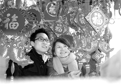 新年临近,山东省即墨市小商品城的新年饰品迎来销售旺季,许多店铺挂起了中国结、年画、红灯笼等年节饰品,节日气氛渐浓。图为市民在即墨市小商品城选购新年饰品。 本报记者 刘 成 通讯员 王淑苹摄影报道