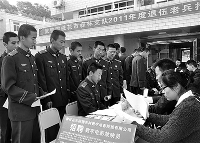 左图 每到老兵退伍时,武警四川省森林总队都要邀请地方实力雄厚的用人单位到部队举行招聘会,为老兵解除后顾之忧。