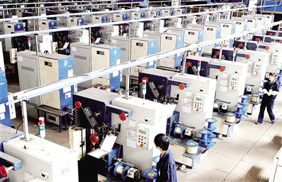 江苏省兴化市兴达钢帘线有限公司员工正在加紧生产。近年来,该市不断推动转型升级,优化产业结构,加大科技创新力度,“品牌”效益逐步显现。 本报记者 李景录摄