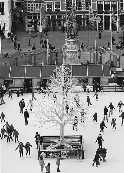 日前,在比利时西北部城市布鲁日,人们在溜冰场上玩耍,使这座历史名城充满了冬季节日的氛围。 新华社发