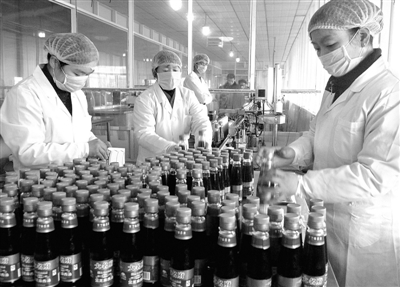 12月29日,河北大名县大名府香油调味品公司罐装生产线的工人正在加紧生产。该县依托传统工艺,已形成40余个小磨香油专业村,年产香油近5万吨,年产值达13.5亿元。 本报记者 李树贵摄