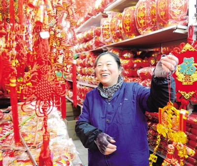 今年元旦,文化消费成为热点。在江西南昌市万寿宫商城,节日装饰品受到市民青睐,一家店主正在热情帮顾客挑选。 新华社记者 周 科摄
